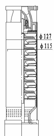1965年上海水泵廠進一步試制出2.2Kw的系列化產品,效率達到57.5~75.5%,已接近國外先進效率指標。從水力設計資料看葉輪和導葉的流道面積變化均勻,說明當時已較好地掌握了水力設計方法。JN型主要針對河湖、溝渠、土井淺水作業(yè),嚴格來講,早期的JN泵不屬井泵系列。但其發(fā)展經驗,尤其是早期葉輪與導流殼的水力設計經驗是彌足珍貴的。