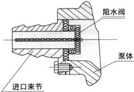 5.自吸泵的進口束節(jié)重裝時,請注意阻水閥應(yīng)向正面,以便與阻水閥正面貼合保證白吸效果(見右下圖)。