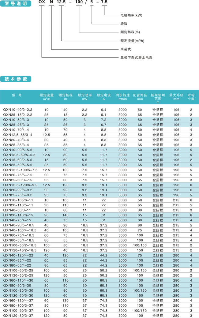 全揚程內(nèi)裝式潛水電泵使用條件及性能參數(shù)