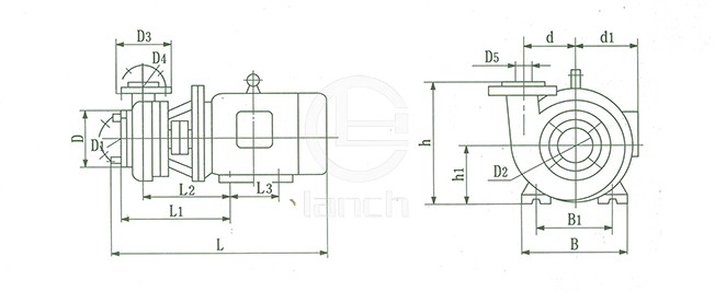 | 規(guī)格型號(hào) | L | L1 | L2 | L3 | D | D1 | D2 | D3 | D4 | D5 | B | B1 | d | d1 | h | h1 | 地腳螺栓 |