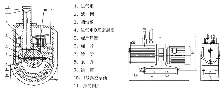 (2)如果直聯(lián)旋片真空泵對真空度要求不高,且油的污染更換頻繁,直聯(lián)真空泵油供應(yīng)困難,可采用50號機(jī)械油代替。