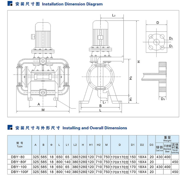 DBY-100立式臥式襯氟電動隔膜泵安裝尺寸區(qū)別