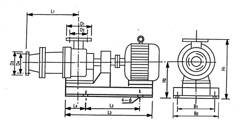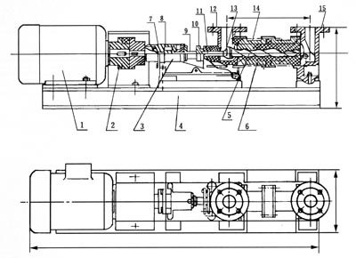 I-1B系列單螺桿濃漿泵由電動機、聯(lián)軸器、泵和底座四個部分組成(見附圖)。