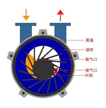 如圖:在泵體中裝有適量的水作為工作液。當(dāng)葉輪按圖中順時(shí)針?lè)较蛐D(zhuǎn)時(shí),水被葉輪拋向四周,由于離心力的作用,水形成了一個(gè)決定于泵腔形狀的近似于等厚度的封閉圓環(huán)。水環(huán)的下部分內(nèi)表面恰好與葉輪輪轂相切,水環(huán)的上部?jī)?nèi)表面剛好與葉片頂端接觸(實(shí)際上葉片在水環(huán)內(nèi)有一定的插入深度)。此時(shí)葉輪輪轂與水環(huán)內(nèi)界面之間形成一個(gè)月牙形空間,而這一空間又被葉輪葉片分成和葉片數(shù)目相等的若干個(gè)小腔。如果以葉輪的下部0°為起點(diǎn),那么葉輪在旋轉(zhuǎn)前180°時(shí)小腔的容積由小變大,且與端面上的吸氣口相通,此時(shí)氣體被吸入,當(dāng)吸氣終了時(shí)小腔則與吸氣口隔絕;當(dāng)葉輪繼續(xù)旋轉(zhuǎn)時(shí),小腔由大變小,使氣體被壓縮;當(dāng)小腔與排氣口相通時(shí),氣體便被排出泵外。