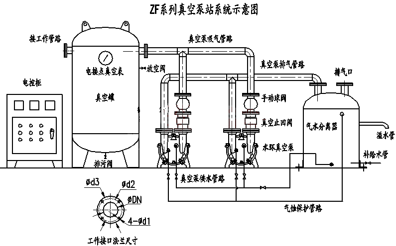 2BV、2BE1設(shè)有汽蝕保護(hù)接口。在泵發(fā)生汽蝕現(xiàn)象時(shí),從泵排氣側(cè)的汽蝕保護(hù)接口充入不凝氣體即可消除汽蝕噪聲,并大大減輕汽蝕對(duì)泵的損害。