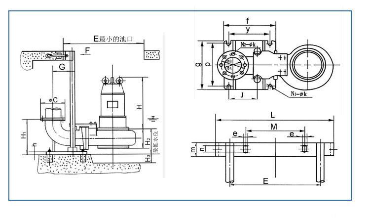 WQ固定潛水式無(wú)堵塞排污泵安裝尺寸圖: