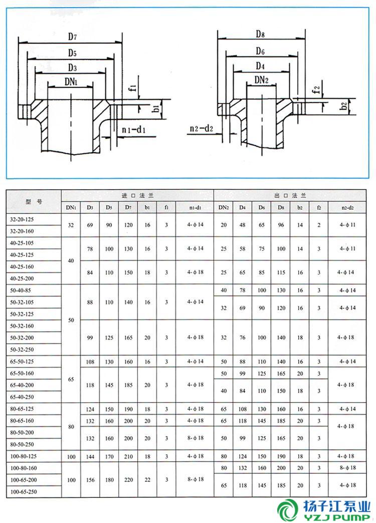 CQB-G系列高溫磁力驅(qū)動離心泵進出口法蘭尺寸:
