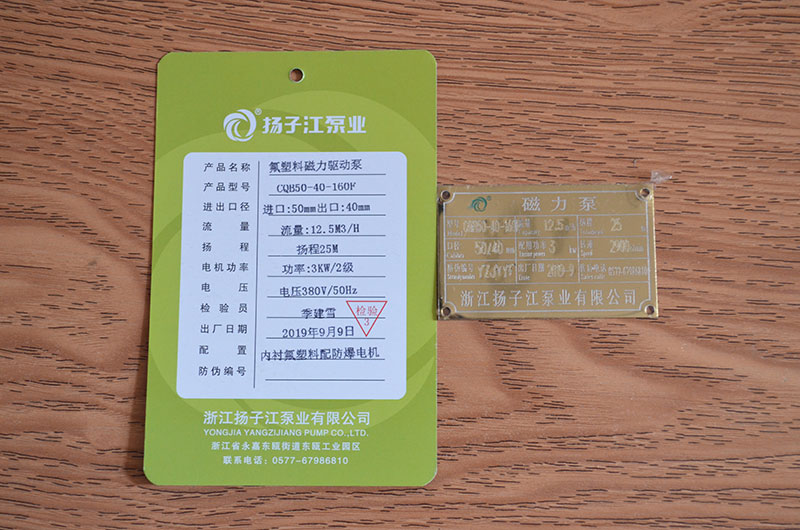 > 磁力泵系列合格證