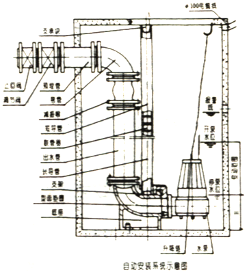 自動安裝系統(tǒng)是為as排污泵固定安裝所提供的主要裝置,包括雙導軌單泵和雙導軌雙泵導向自動耦合機構(gòu),它將給as排污泵的安裝與維修帶來的巨大的方便,此外,可根據(jù)用戶的需要提供浮球開關(guān),能有效地保證排污泵根據(jù)需要的水位變化啟動與停止,不需專人看管,它與潛水排污泵相配合,實現(xiàn)了潛水排污泵的安裝、維修和控制較高的自動程度,提高了產(chǎn)品的安全性和可靠性,主要用于污染嚴重的排水坑,以及固定安裝的排水站。