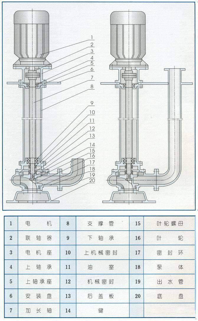 3、泵為立式結(jié)構(gòu),工作時(shí)泵體浸在液體中,因而很容易起動(dòng),不存在排氣抽空問(wèn)題,同時(shí)具有無(wú)泄漏等特點(diǎn),液下深度可達(dá)0.5-7米。