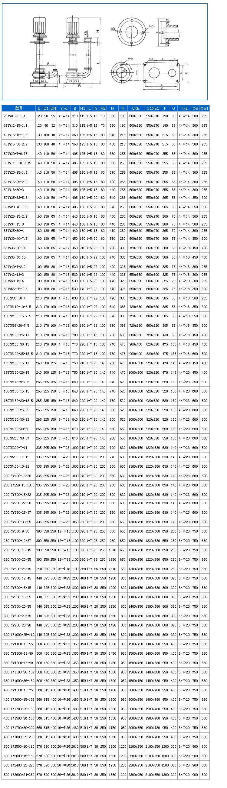 液下式無(wú)堵塞排污泵性能參數(shù)
