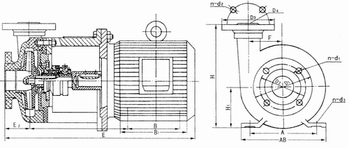 PF(FS)型系列化工泵為直聯(lián)式結(jié)構(gòu),由泵體及托架與電機(jī)法蘭聯(lián)接,托架支承泵體,葉輪通過軸與電機(jī)直聯(lián)。該系列泵的特點(diǎn):結(jié)構(gòu)簡單緊湊、零件少、性能好。泵的旋轉(zhuǎn)方向,自吸入口向電機(jī)方向看為順時針方向旋轉(zhuǎn),泵出口垂直向上。    泵的密封,選用聚四氟乙烯(F4)波紋管,外裝式耐腐蝕機(jī)械密封。