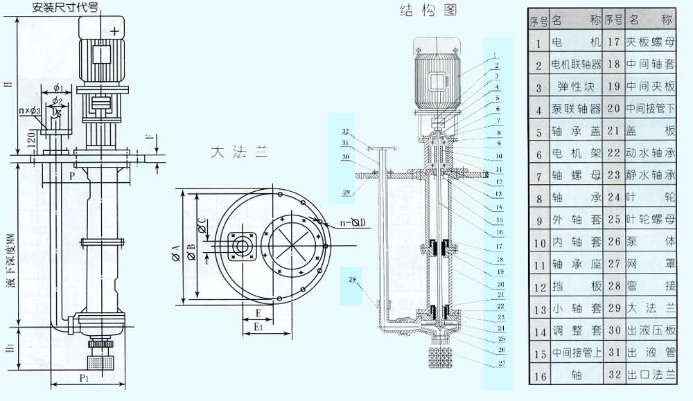 FYS型氟塑料液下泵為立式結(jié)構(gòu),泵體、葉輪部分浸沒在液體里,故占用較小面積,軸封無泄漏現(xiàn)象,因而適用于輸送介質(zhì)溫度為-5℃至105℃腐蝕性液體。泵的轉(zhuǎn)向應(yīng)按泵所指方向啟動。不能反轉(zhuǎn)運行,啟動時泵體必須淹沒在液體中。A:增強聚丙烯。 C:聚偏氟乙烯!:氟塑料合金