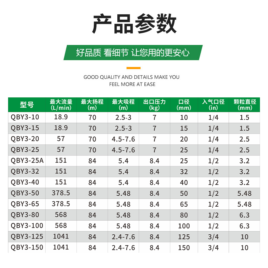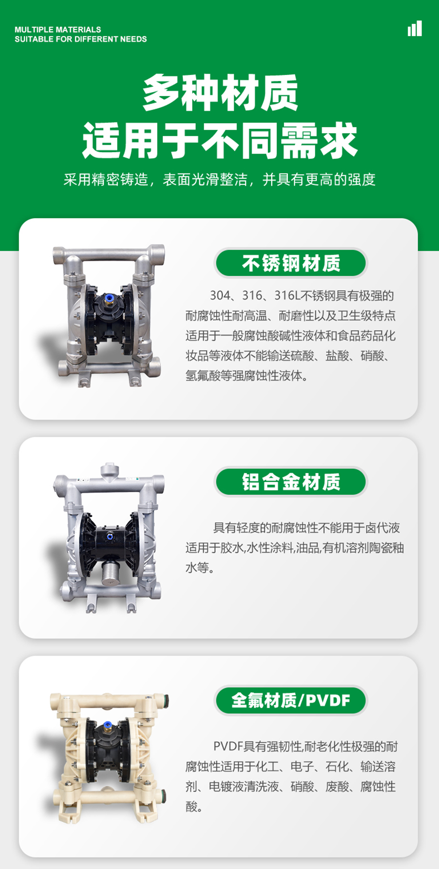 QBY系列氣動隔膜泵是一種新型輸送機械,是目前國內新穎的一種泵類。采用空氣壓縮機壓縮空氣為動力源,對于各種腐蝕性液體,帶顆粒的液體,高粘度、易揮發(fā)、易燃、劇毒的液體,均能予以抽光吸盡。其性能參數(shù)與聯(lián)邦德國的 WLLDENPVMPS、美國的MARIOWPUMPS相近.本廠目前已形成系列化生產
