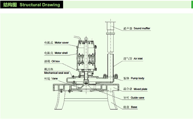 3、機體沉入水中運行,無噪音。進氣管出水面可加裝消音器,增強消音效果。