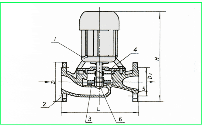 本公司生產的SGR型系列立式熱水管道泵(以下簡稱電泵),管道泵執(zhí)行標準JB/T6878-2006,本系列產品是為管道增壓輸送,解決管道壓力過低而研制的新穎電泵。由于采用先進機械密封,電機主軸直接安裝葉輪,故有效率高、耗電省、結構緊湊、體積小,重量輕,裝修方便等特點。并可根據(jù)揚程與流量的需要并串聯(lián)使用。本電泵由電動機,機械密封,水泵三部分組成,電機為單相或三相異步電動機;水泵與電動機之間采用機械密封,電泵轉子軸采用優(yōu)質碳鋼材料,并經過耐腐處理確保軸有更可靠的機械強度,可有效地提高軸的耐磨性和耐腐蝕性,同時也有便于葉輪的維修和拆卸,泵各固定止口密封處采用"O"形橡膠密封圈作靜密封。