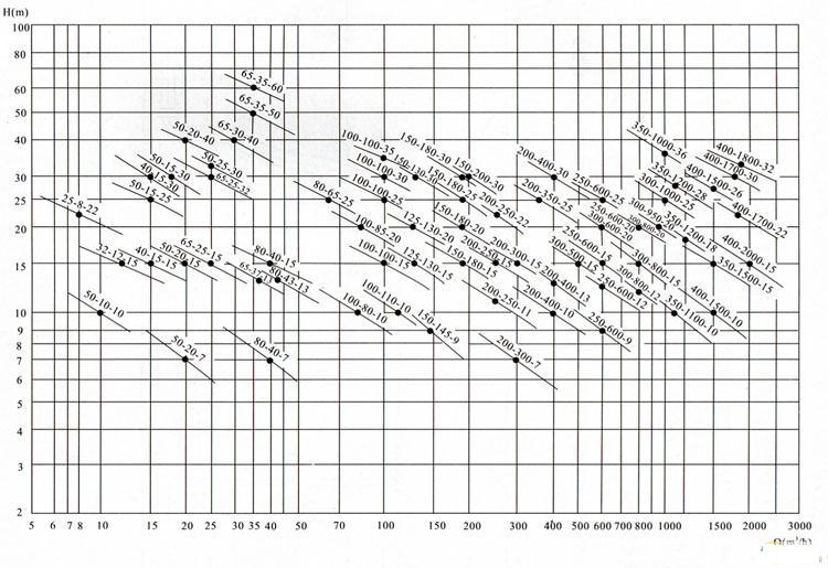 | 型號 | 口徑 mm | 流量 m3/h | 揚(yáng)程 m | 功率 KW | 轉(zhuǎn)速 r/min | 效率 % |