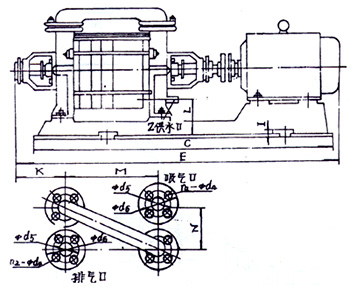 1、2SK系列水環(huán)真空泵關(guān)閉進(jìn)氣管路上的閘閥(用戶自裝,圖上未畫(huà)出);