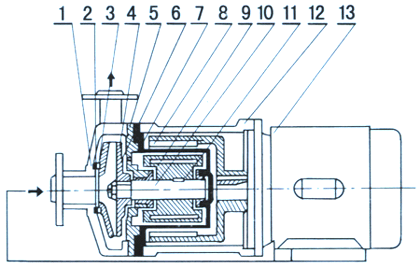 CQ系列耐腐蝕磁力泵結(jié)構(gòu)圖