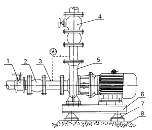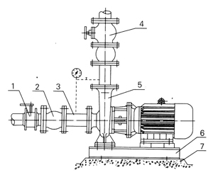 4、在泵的進、出口管路上安裝調(diào)節(jié)閥,在泵出口附近安裝壓力表,以控制泵在額定工況內(nèi)運行,確保泵的正常使用。
